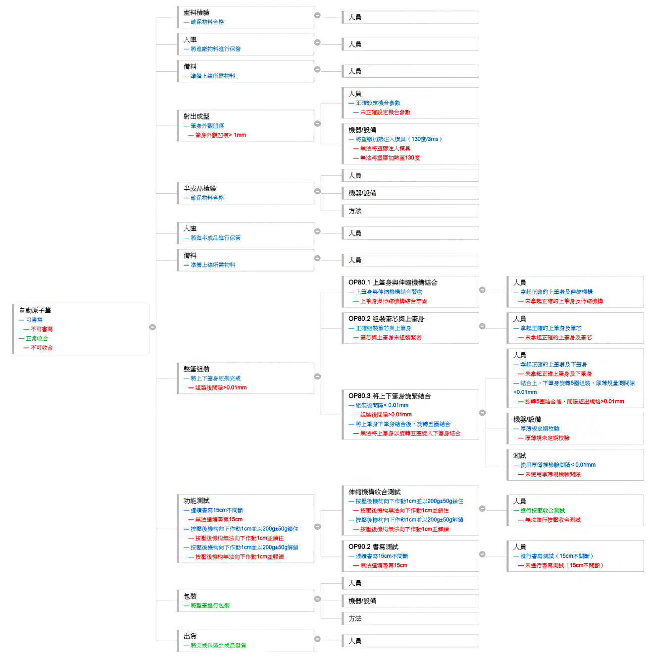 ➤ 以自動原子筆為例:失效影響為無法正常書寫、無法正常收合。